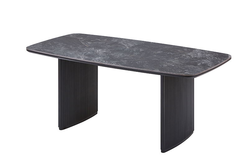 Description | Dining table, 25mm thickness MDF+stone board table top with painted edges. MDF legs with wave surface. |